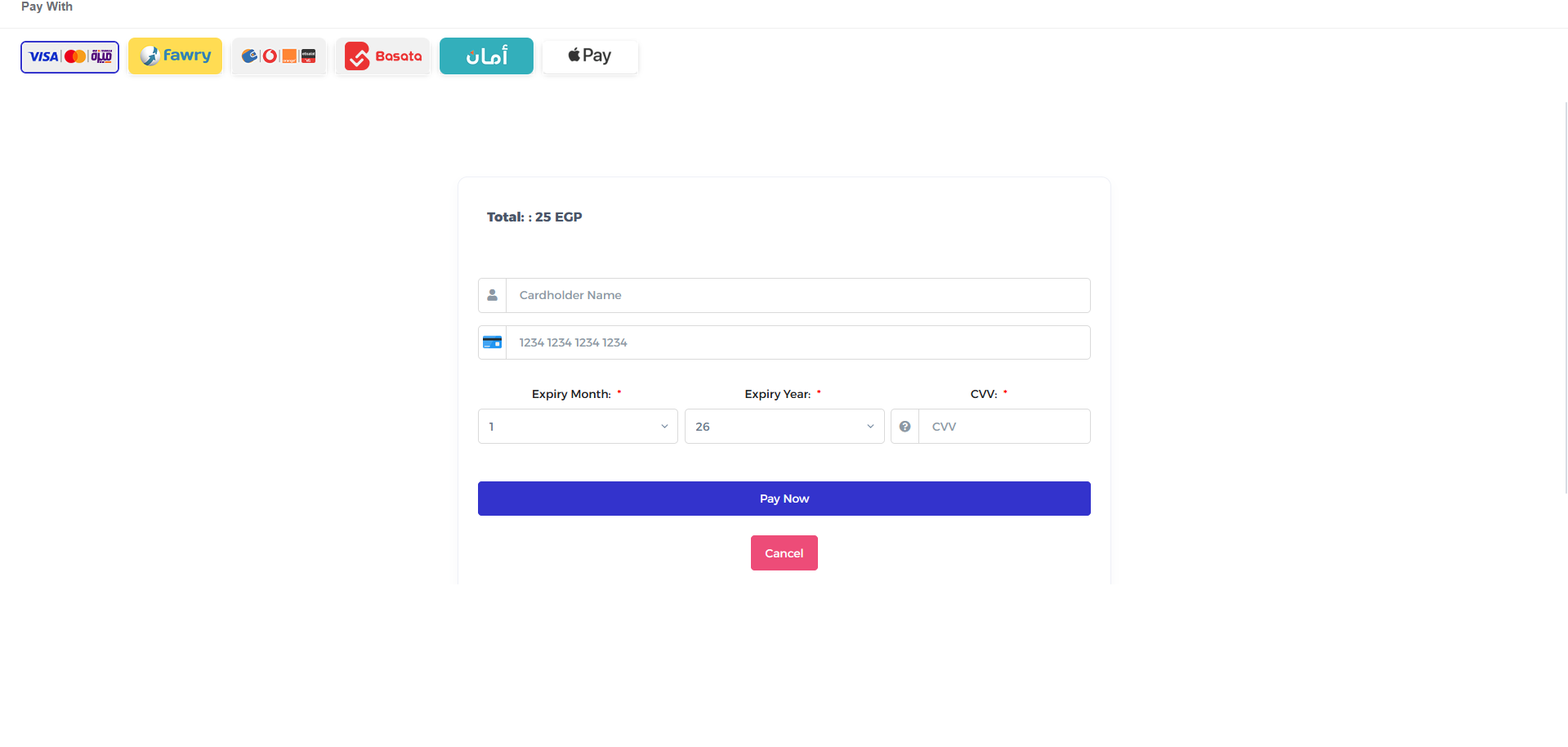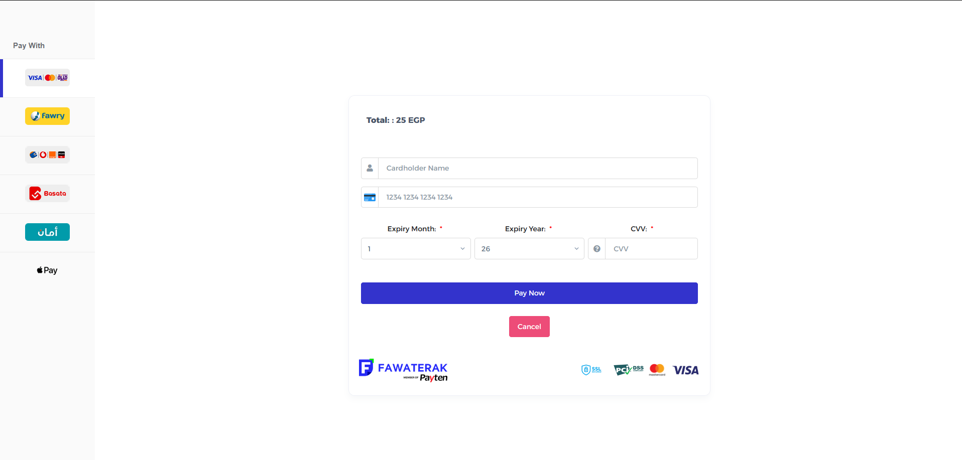 Second Step , Append Fawaterk div with id fawaterkDivId in any place in your checkout page: